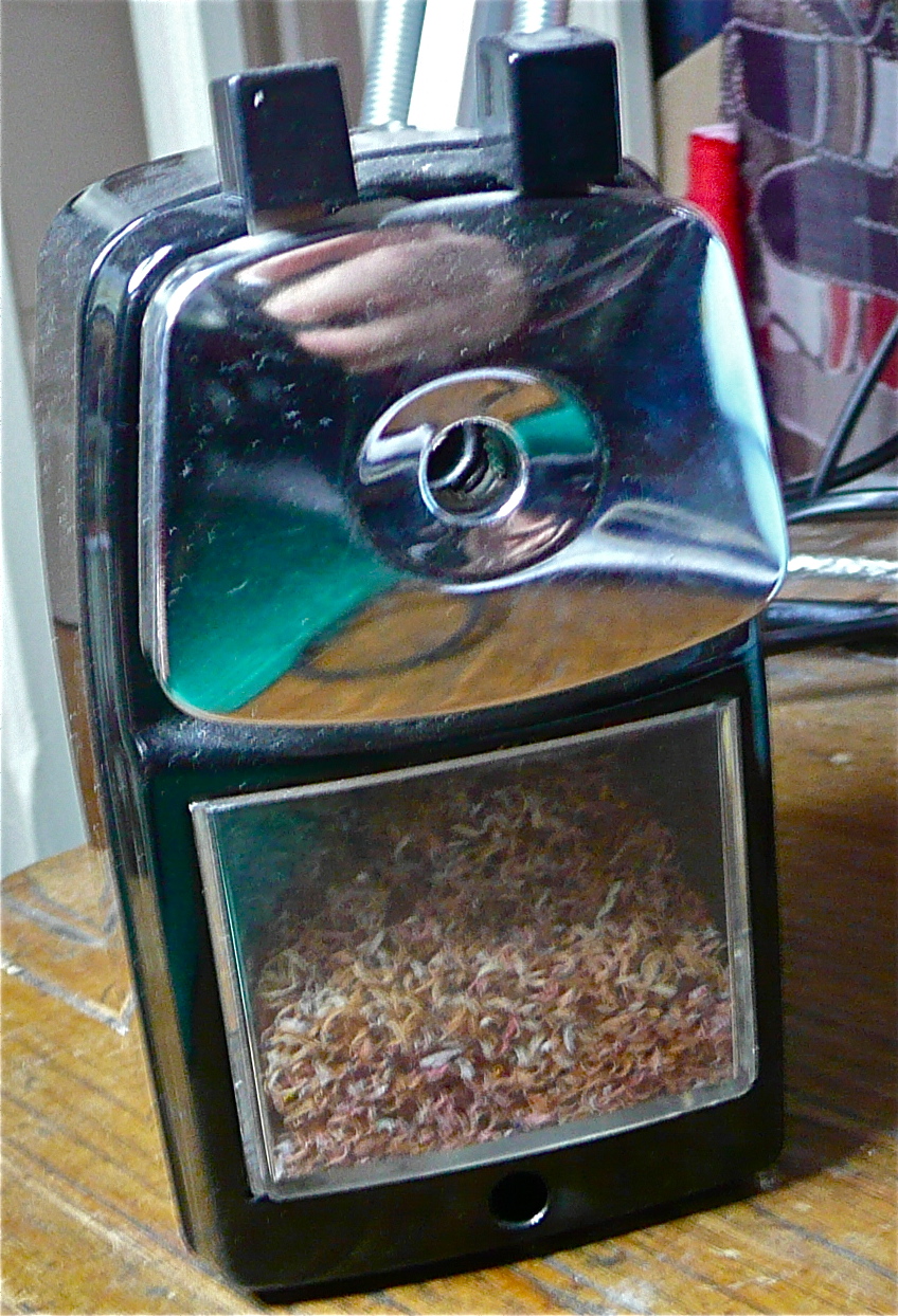 I have always loved pencils, my perfect souvenir of a visit anywhere is the pencil. So partial am I, if I have been to a meeting or conference I usually end up, quite by accident coming home with other people’s pencils in my bag…woops! I love the smell of real cedar wood pencils that have been freshly sharpened. I have always had a thing about electric pencil sharpeners, but never felt quite rich or extravagant enough to buy one.